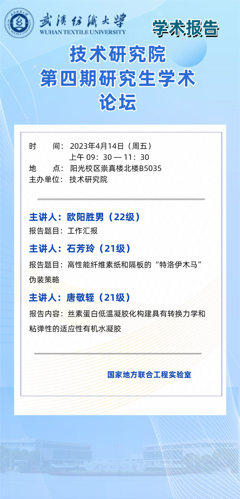 学术预告:第254期研究生学术论坛暨技术研究院2023年第4期研究生学术论坛